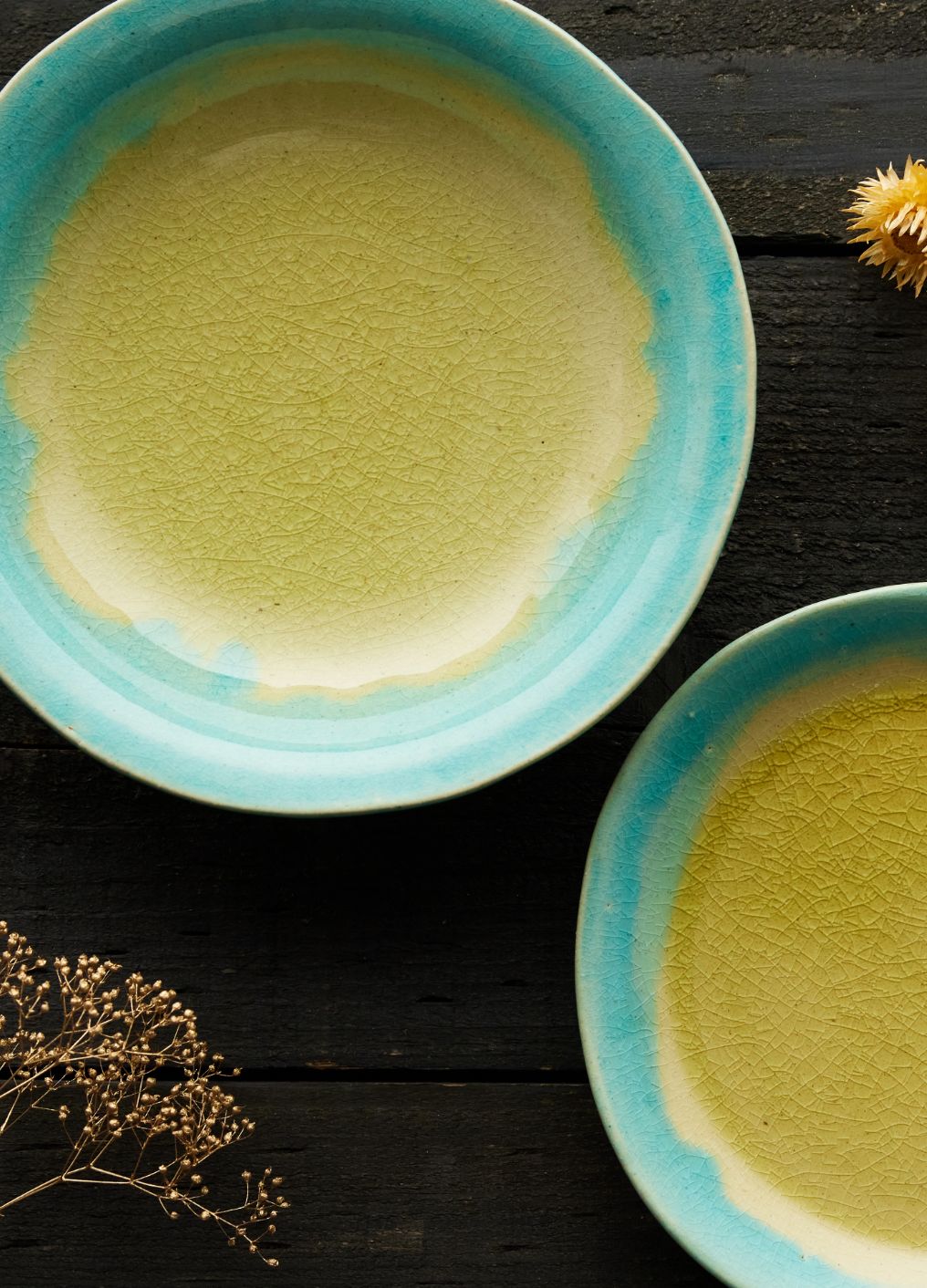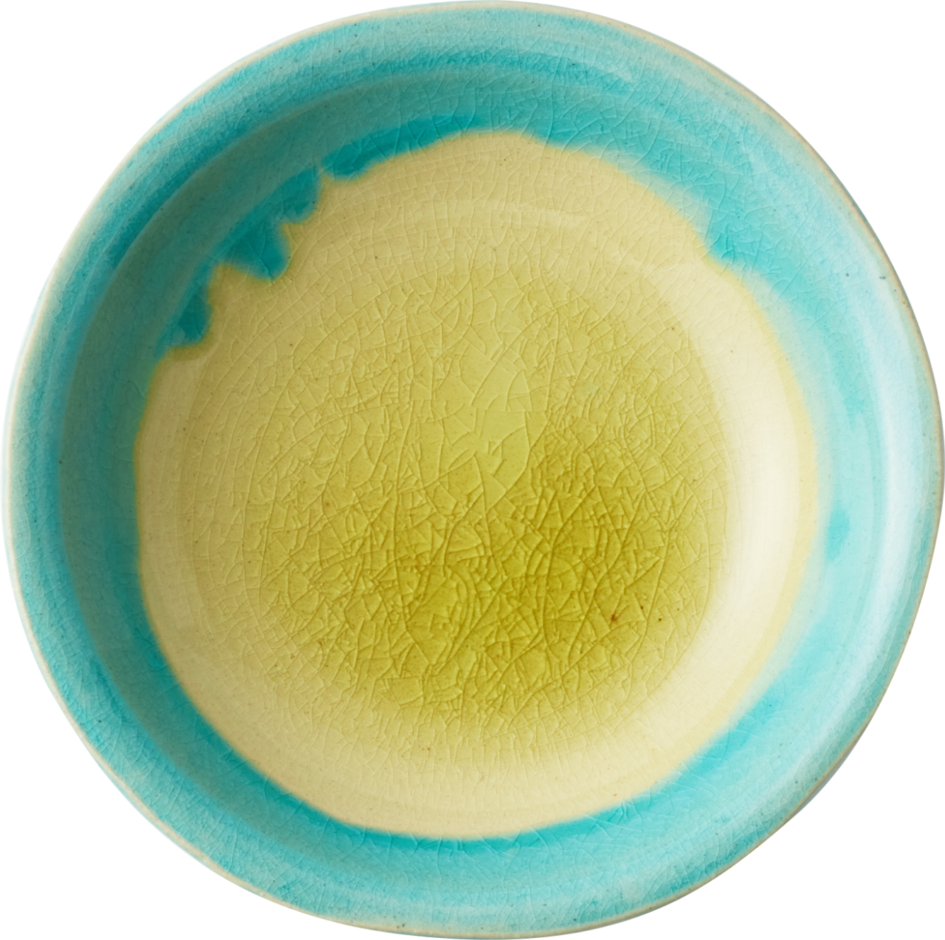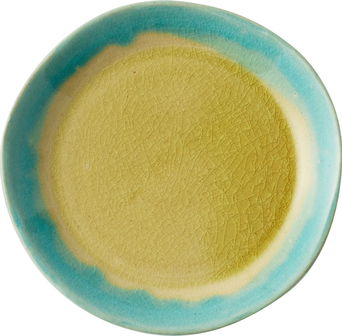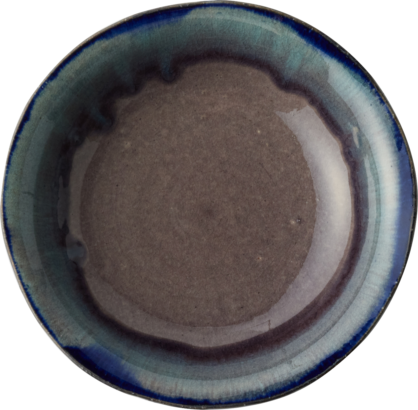 クラフト感を際立てるため、全体のシルエットやエッジの立ち方も、あえて少し歪ませて成形。ベースとなる瑠璃色のガラス系釉薬を内側と外側に掛け分け、複数の顔料を溶け合わせることで、自然なグラデーションを表現した世界にひとつだけの個性溢れる風合いに。