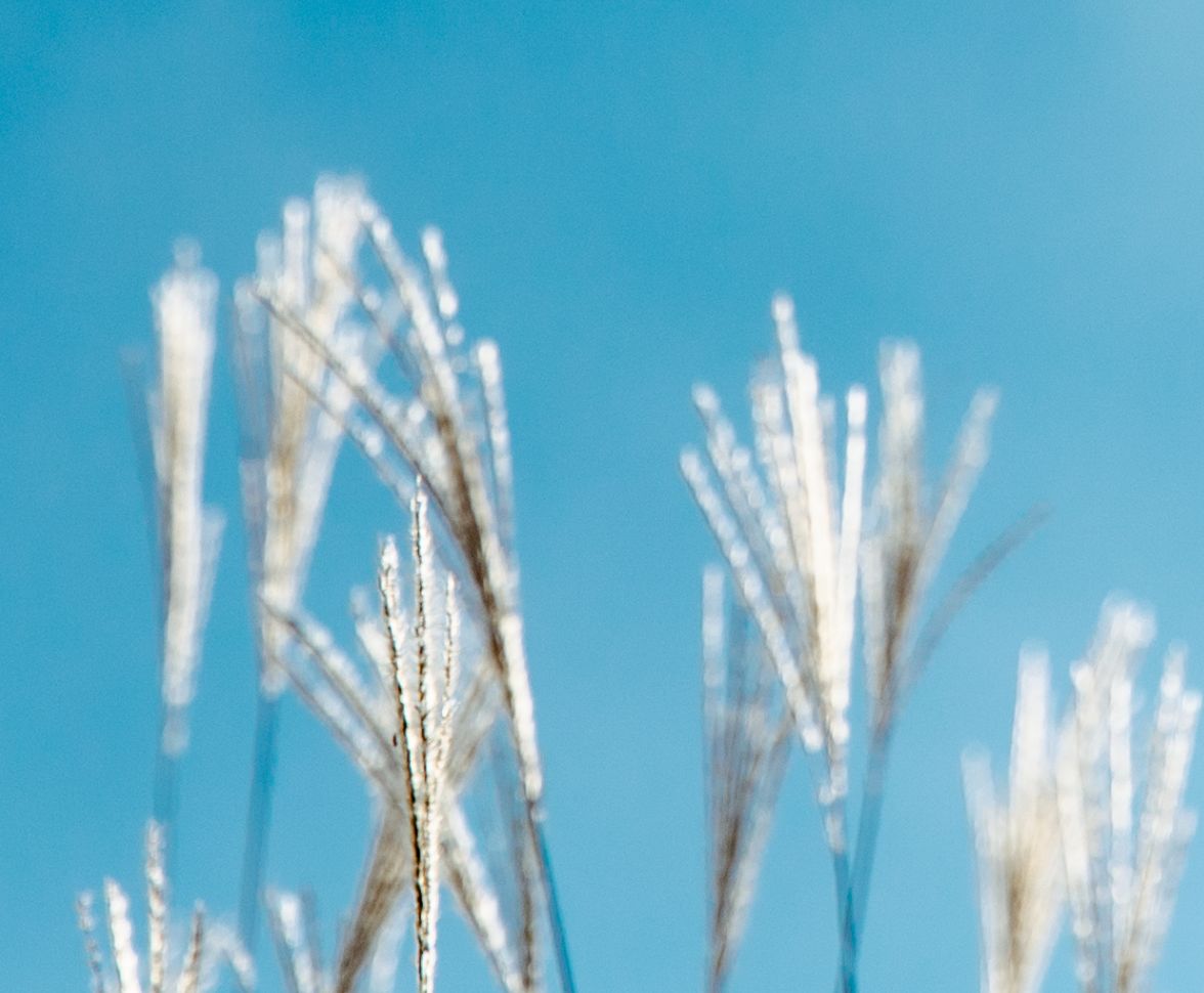 秋晴れの下、夕陽に照らされ黄金に輝く芒の野を思わせる『穂芒』。空は高く、雲は遠く、季節の移ろいを静かに見守る。過ぎゆく一瞬の秋のひととき。色鮮やかなに発色するブルーは“秋空”。黄金色に焼き上がる金彩釉は“芒 (すすき)”に見立てて、二色の釉薬が織りなす秋のひとときを表現。