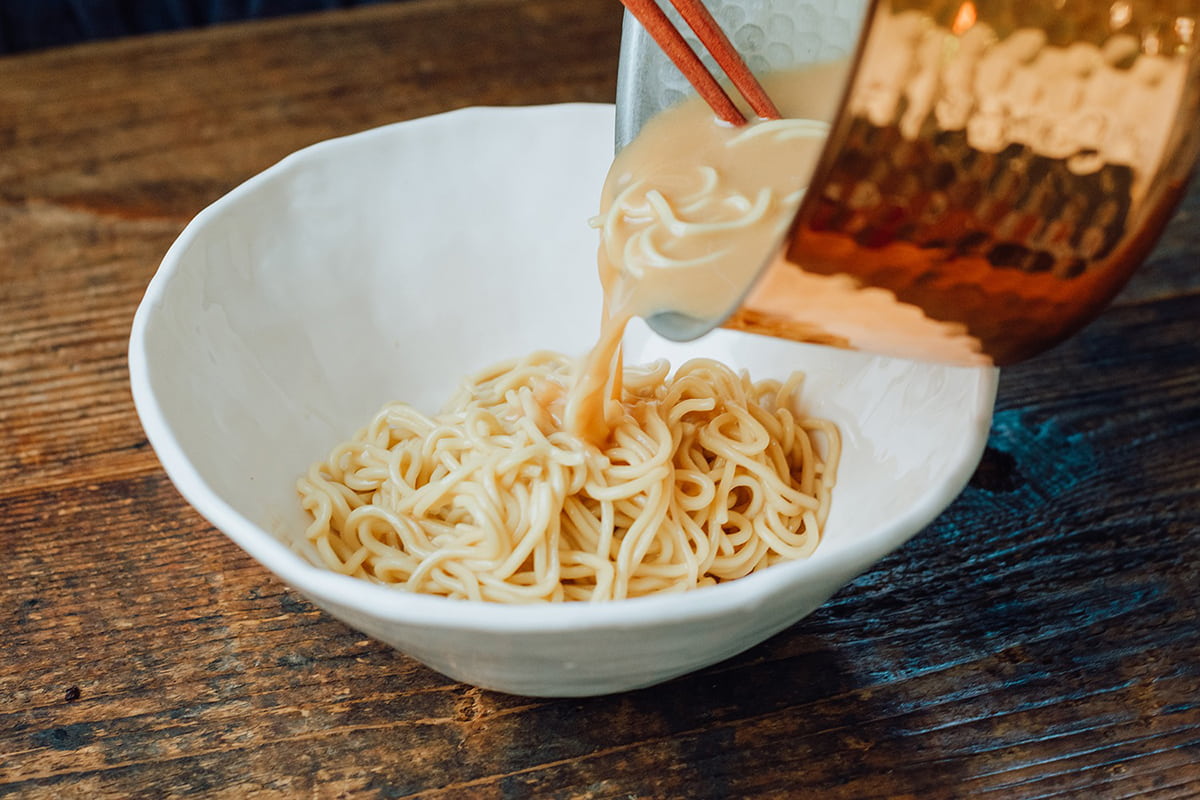 | 原材料名 | めん(小麦粉(国内製造)、卵白粉末、食塩、小麦たん白)、ポークエキス、醤油、鶏油、食塩、佐藤、煮干しエキス、昆布だし、あさりエキス、オニオンパウダー/調味料(アミノ酸等)、カラメル色素、アルコール、かんすい、クチナシ色素、酸化防止剤(ビタミンE)、(一部に小麦・卵・大豆・鶏肉・豚肉を含む) |