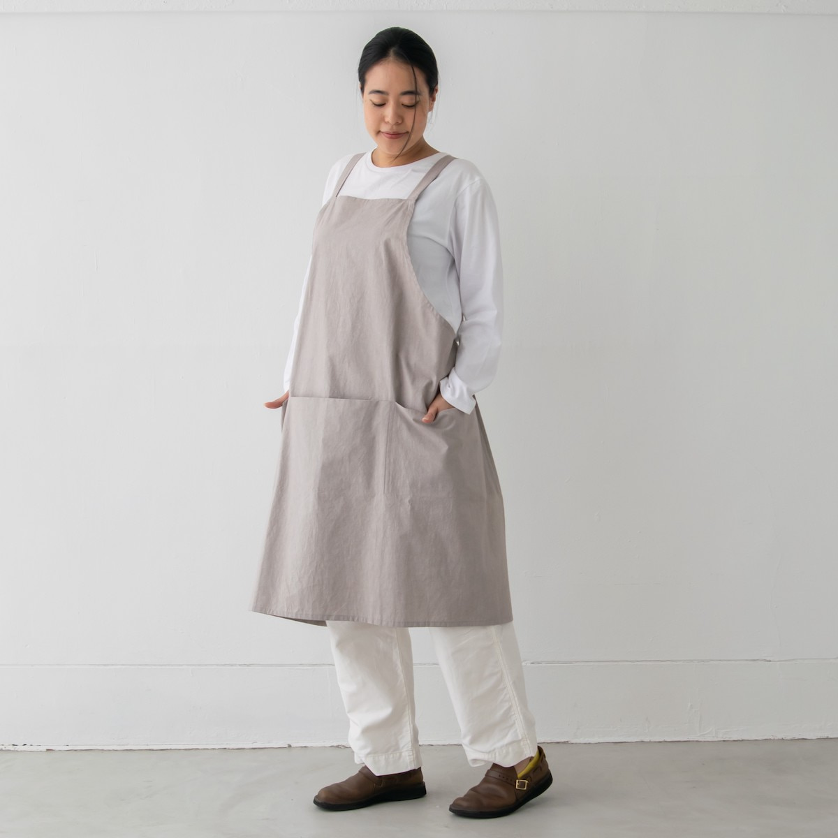 | 商品名 | SUNNY LOCATION バッククロス チムニーエプロン グレージュ コットン 日本製 |