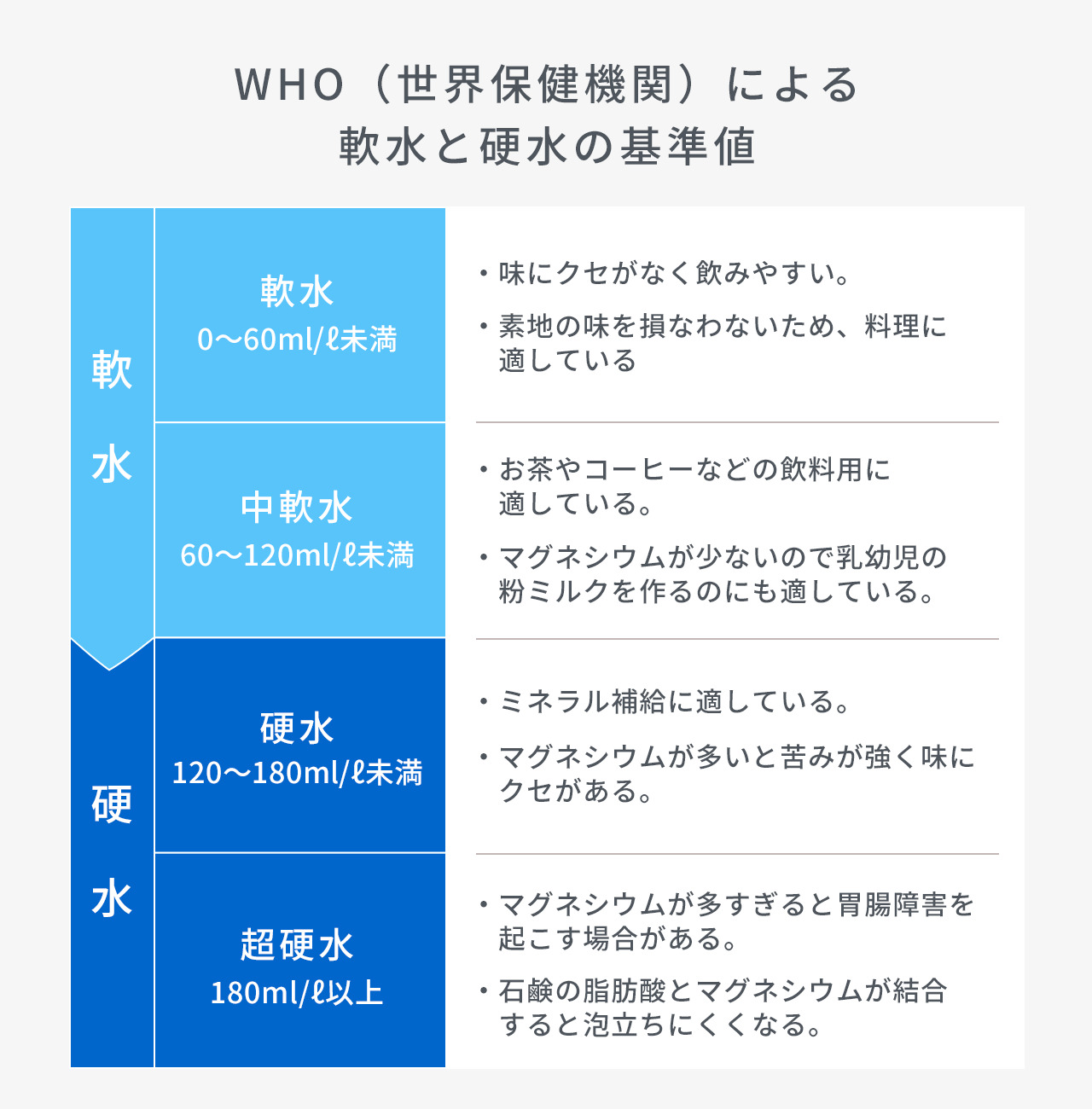 | 硬度 | 約25mg/L(軟水) |