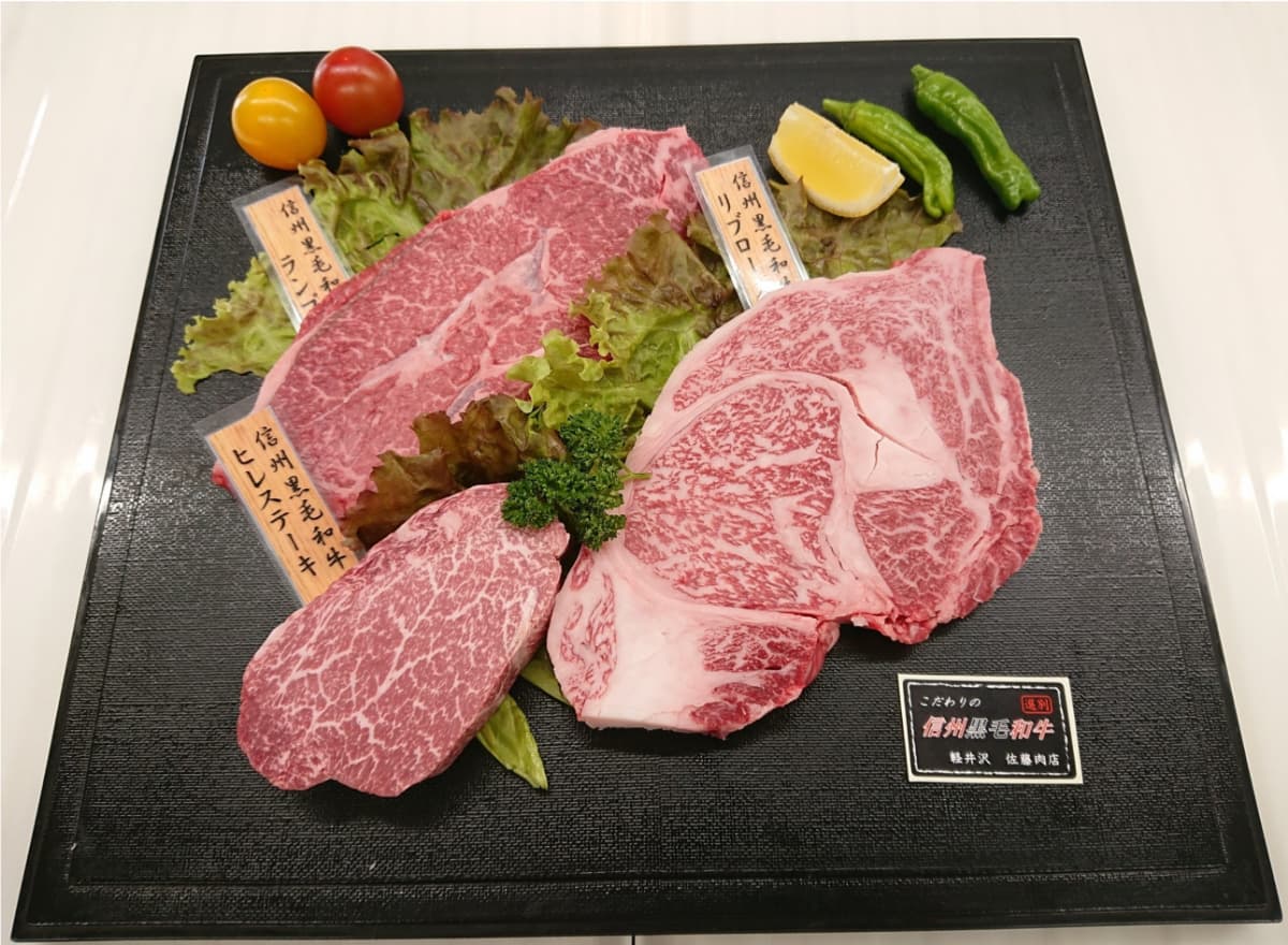 | 名称 | 佐藤肉店こだわりの信州黒毛和牛ステーキ味比べ三味セット |