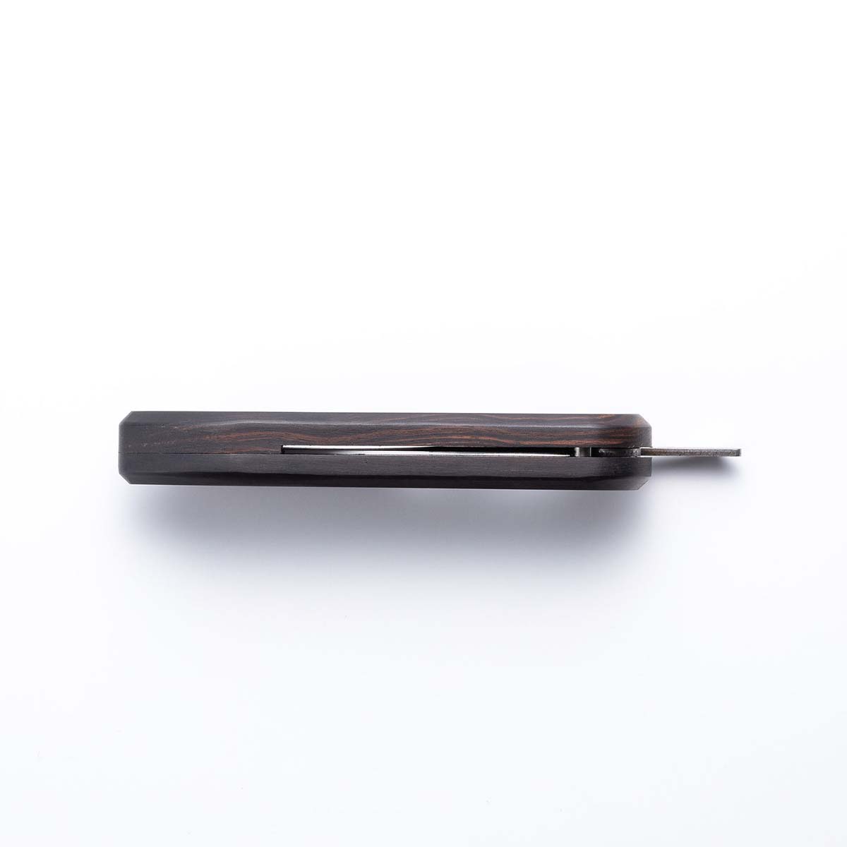 | 材質 | 刃:両刃 3層の割込み(芯材/安来鋼銀紙三号・外層/ステンレス)、柄:縞黒檀(天然木)、ネジ:真鍮 |