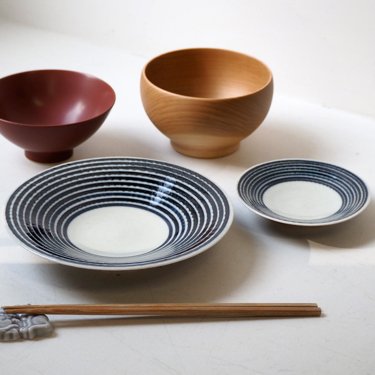 和食・洋食問わず盛り付けできて重宝しています。ボーダー柄は今まで持ってなかったけど家族の人数分購入して大正解でした。