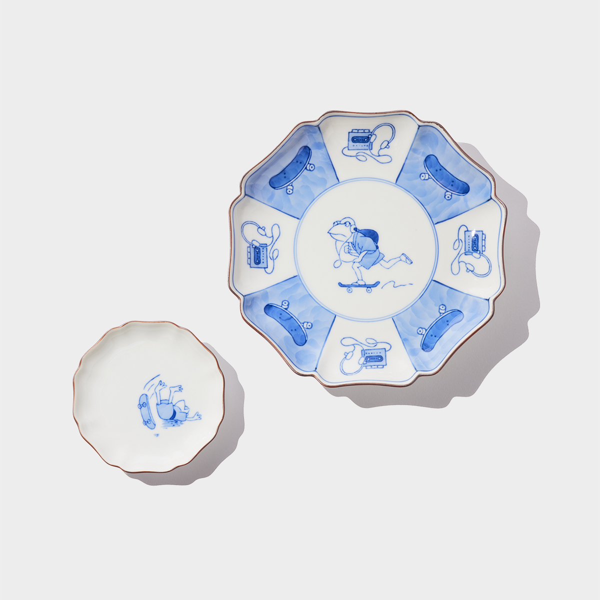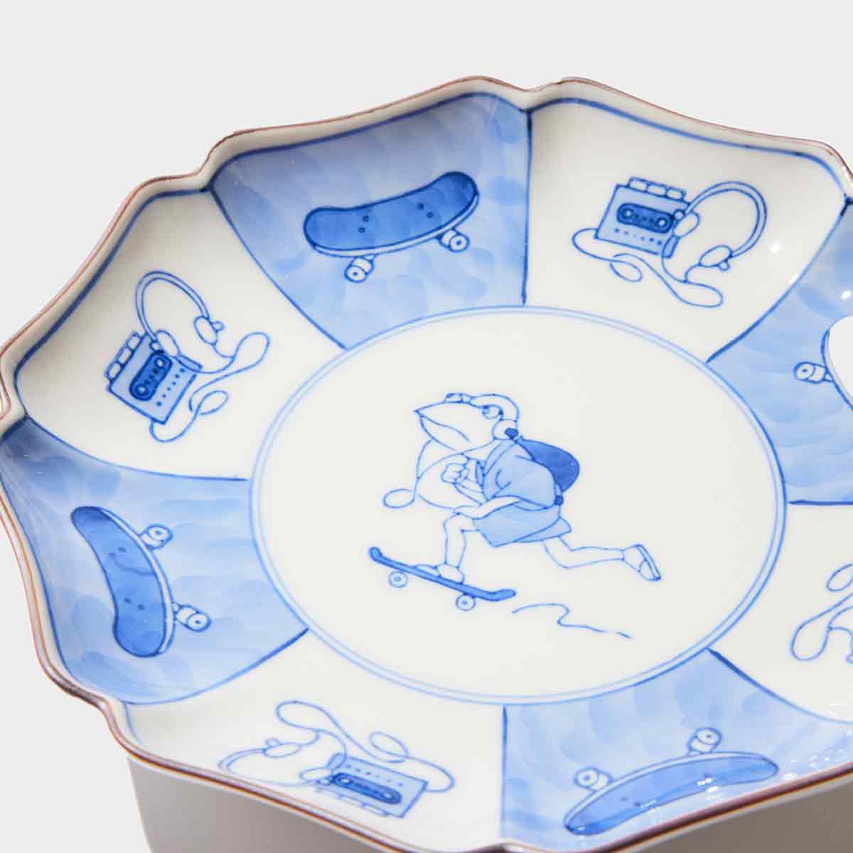 | 商品名 | 伝統と遊び心 石川県の伝統工芸・九谷焼の6寸モッコ皿 φ18.8cm - スケーターのカエルくん|YU SUDA × Japan Craft |