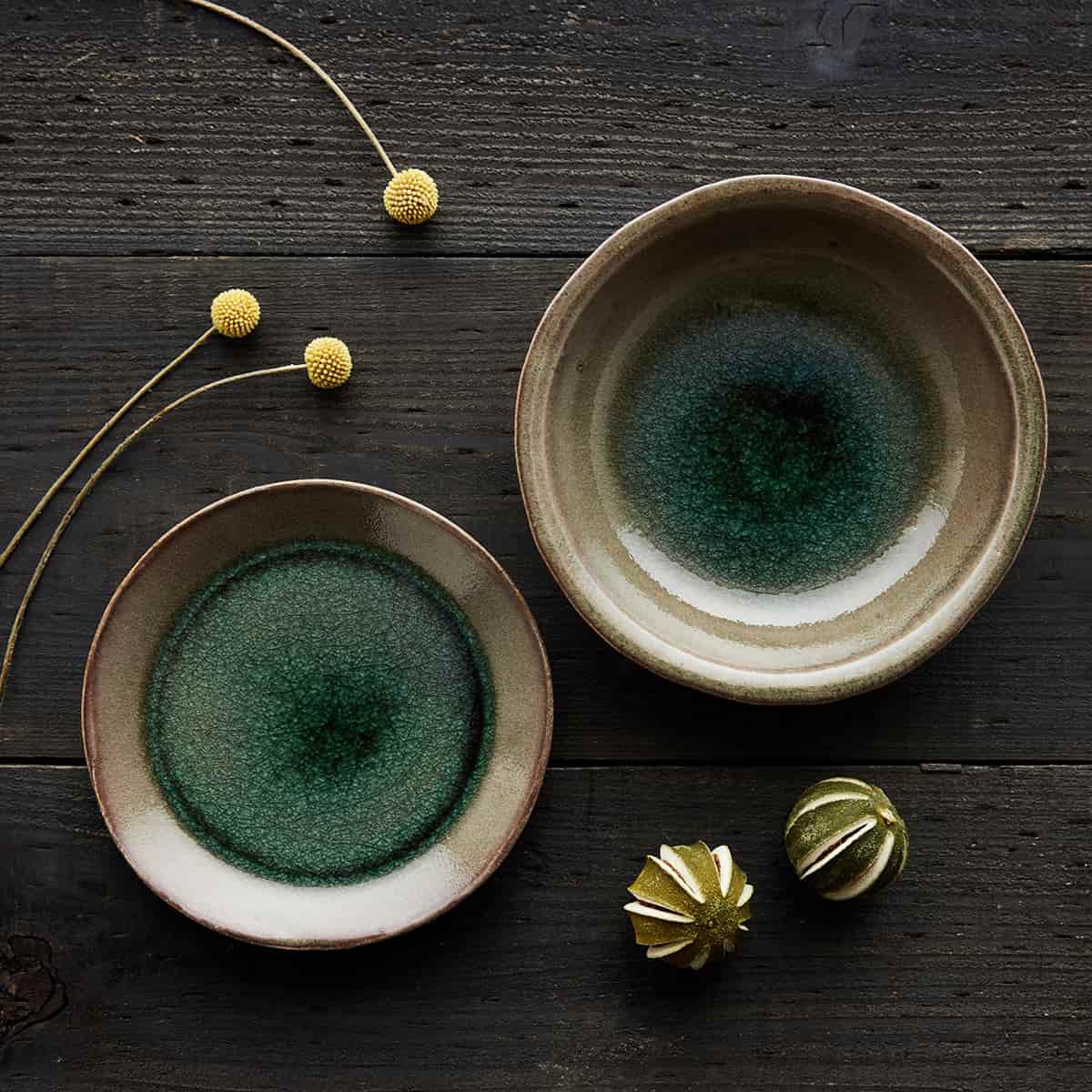 緑とベージュの組み合わせがいいですね。どんな料理でも盛り付けやすいし重宝してます!