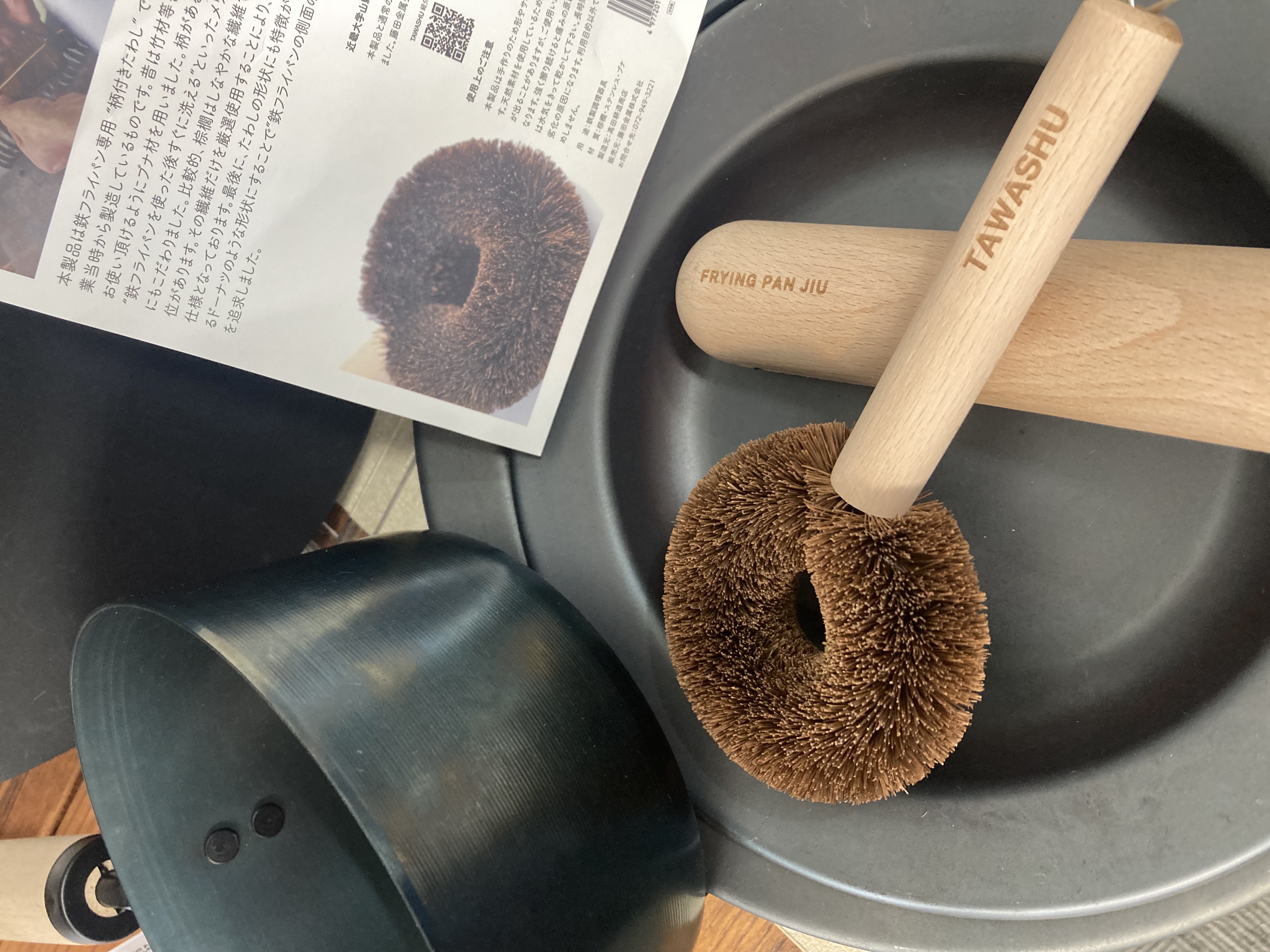 藤田金属さんの鍋とフライパンをこのショップで購入し、愛用しておりました。専用手入れのため、こんなシュロたわしが、丁度、欲しいと思ってましたー。取手付きで、下げフックがあり、使い勝手が良く、また、お気に入りが増えました。是非みなさんも、鍋とセットで購入する事をおすすめします。