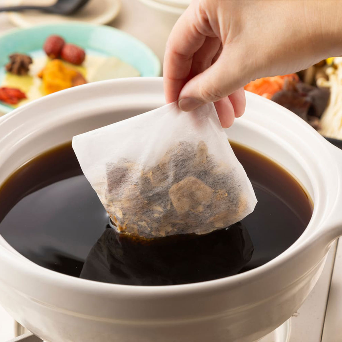 | 原材料(薬膳セット) | 棗(ナツメ)、陳皮(チンピ)、八角、クコの実、ローリエ、松の実 |