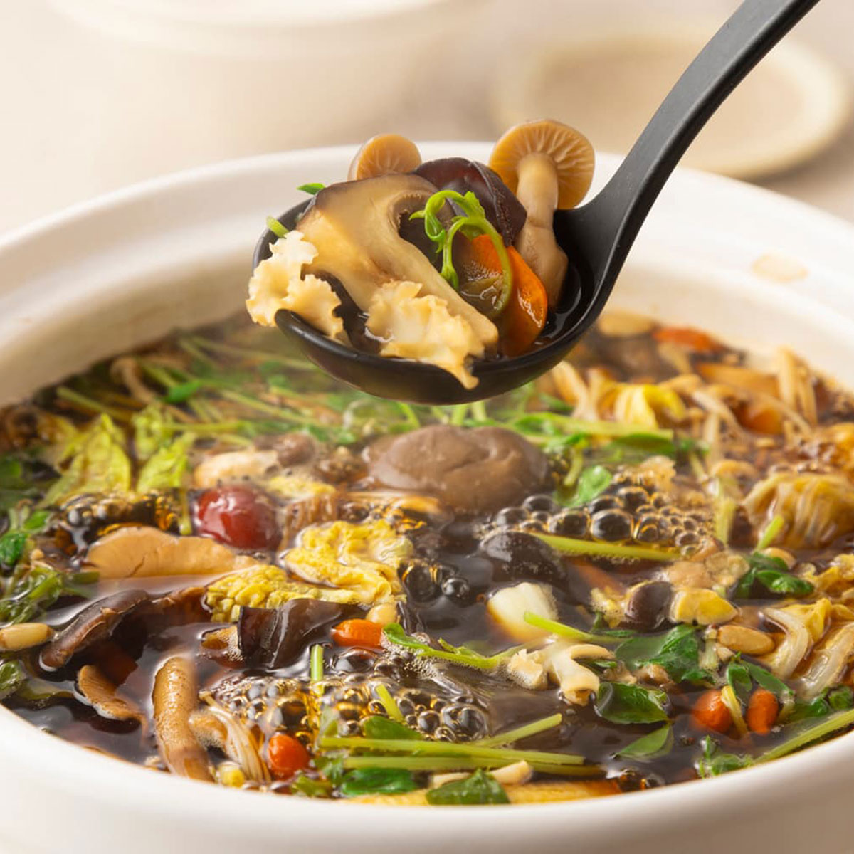 薬膳黒旨スープとキノコの相性が抜群!